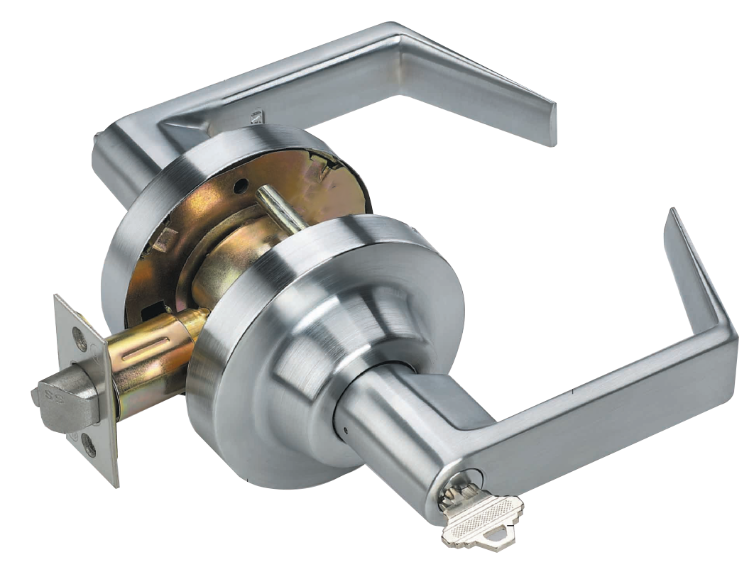 Classroom: Key locks/unlocks exterior lever; inside lever always free